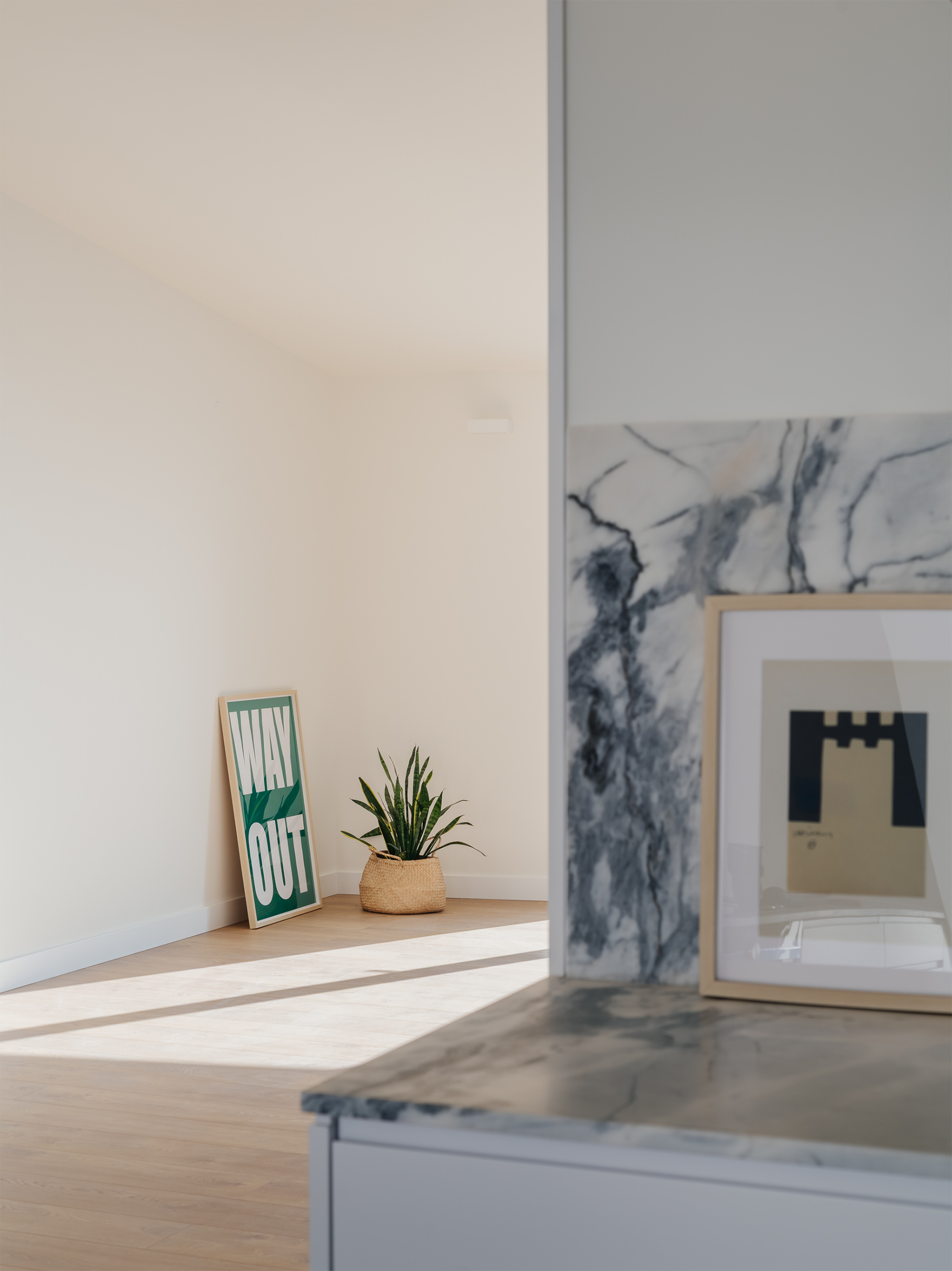 Inside, the spaces are distributed from private to public. This inversion is motivated by the desire to allocate the highest area with the best view over the Tagus River and the city to the social spaces, to the detriment of the bedrooms, which are used more occasionally. Thus, on the interior path, from the entrance to the apartment, the spaces begin to be more compartmentalized, becoming wider and more open, culminating in the south-facing outdoor terrace.